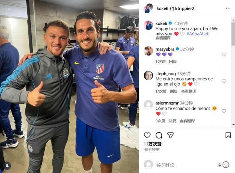 8月10日訊 季前友誼賽,馬競以2-0的比分戰(zhàn)勝紐卡。本場比賽,馬競舊將特里皮爾為紐卡首發(fā)出戰(zhàn)。賽后,馬競隊長科克曬出了兩人的合影。