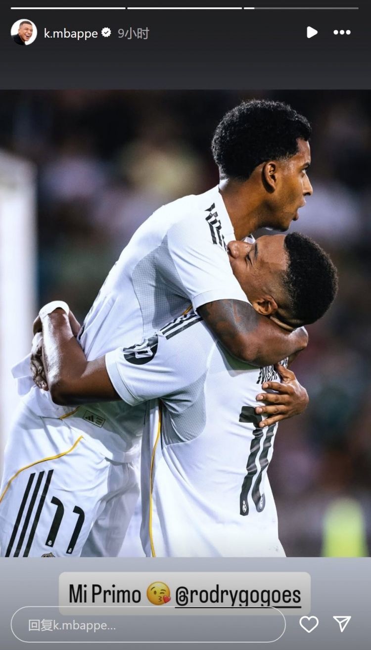 此役姆巴佩2射1傳,助攻羅德里戈破門。姆巴佩在社交媒體上曬出慶祝時(shí)抱起羅德里戈的照片,配文:“我的兄弟?!?/p>