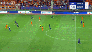 08月15日訊 中超第21輪,云南玉昆vs武漢三鎮(zhèn)。比賽第75分鐘,韓子龍禁區(qū)內(nèi)得球破門,云南玉昆2-1再度取得領(lǐng)先!