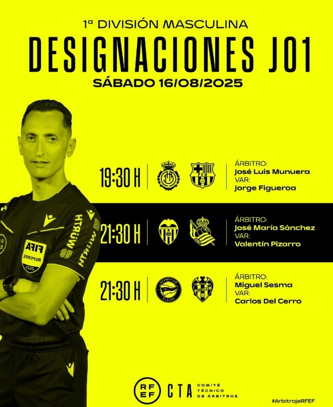 8月15日訊 西甲官方公布了北京時(shí)間周日凌晨3場(chǎng)比賽的裁判安排,其中穆努埃拉將執(zhí)法巴薩客戰(zhàn)馬洛卡的比賽。