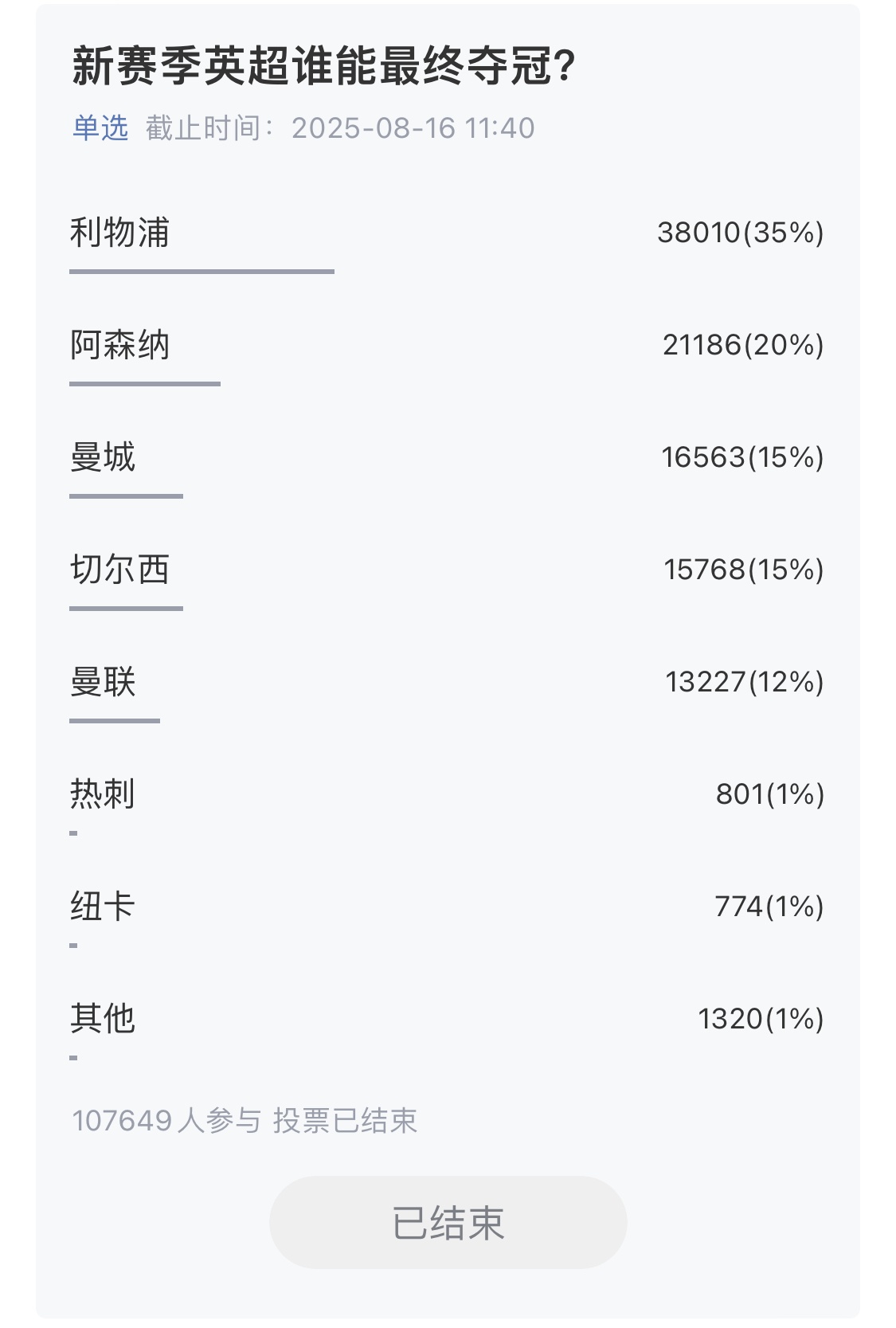 得票率最高的球隊(duì),最終幾隊(duì)奪冠?與小吧一起拭目以待,期待新賽季越來越精彩!