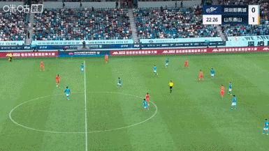 比賽第23分鐘,謝文能精準傳中,卡扎伊什維利頭球破門,場上比分深圳新鵬城0-2山東泰山。