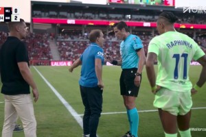 第23分鐘,亞馬爾帶球內(nèi)切打門,被萊略頭球解圍后倒地,但主裁判未吹停比賽,費(fèi)蘭-托雷斯跟進(jìn)遠(yuǎn)射將球打入死角,裁判示意進(jìn)球有效,2-0!↓