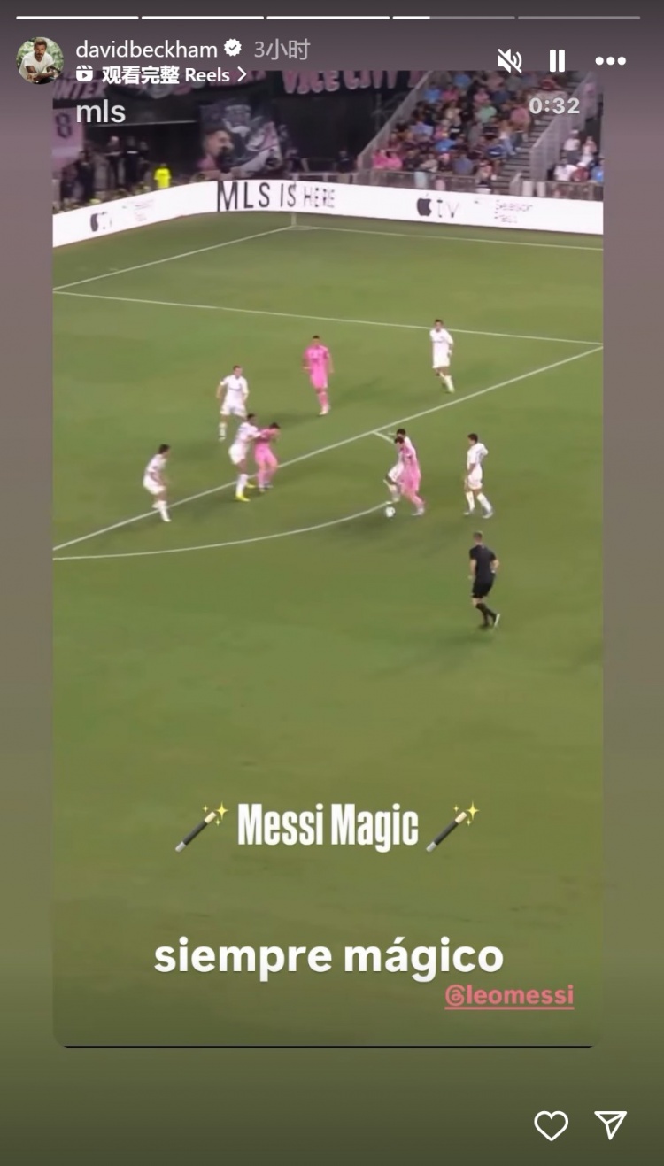 貝克漢姆還轉發(fā)梅西遠射破門的視頻,配文:“梅西魔法。永遠充滿魔力?!?/p>