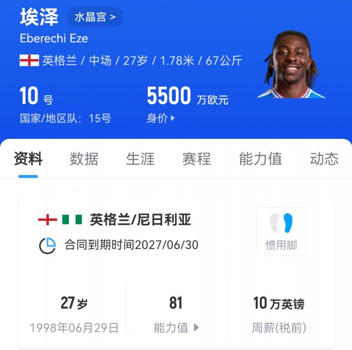 如果情況不利的話,水晶宮可能今夏在前中后三條線上都將失去一位重要球員;而值得一提的是,埃澤(5500萬(wàn)歐元)、沃頓(4500萬(wàn)歐元)、格伊(4500萬(wàn)歐元)正是水晶宮隊(duì)內(nèi)身價(jià)最高的三人。