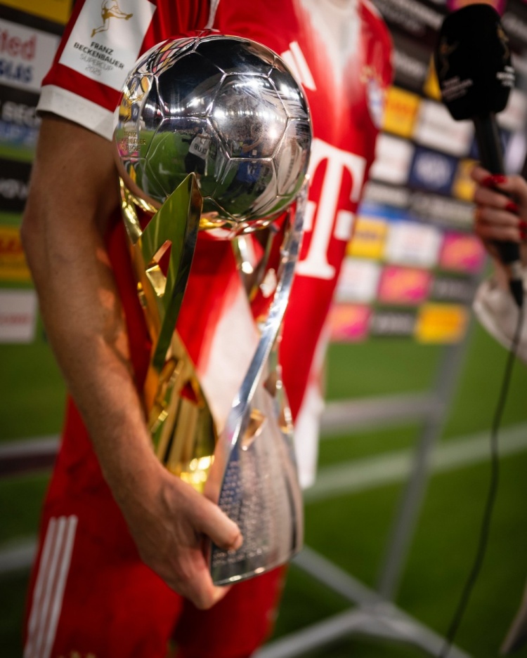 凱恩更新社媒動態(tài),曬出手捧德超杯冠軍獎杯的照片,配文:“本賽季第一波照片大放送!”