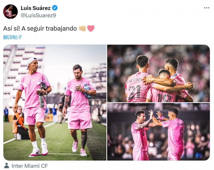 8月17日訊 美職聯(lián)常規(guī)賽,邁阿密國(guó)際3-1戰(zhàn)勝洛杉磯銀河。賽后,蘇亞雷斯在社交媒體曬圖,慶祝球隊(duì)獲勝。