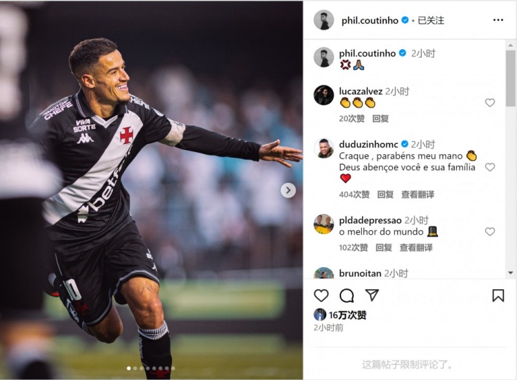 庫蒂尼奧社媒曬出多張賽場照片,慶祝球隊(duì)取勝,其中包括與內(nèi)馬爾的賽場同框照。