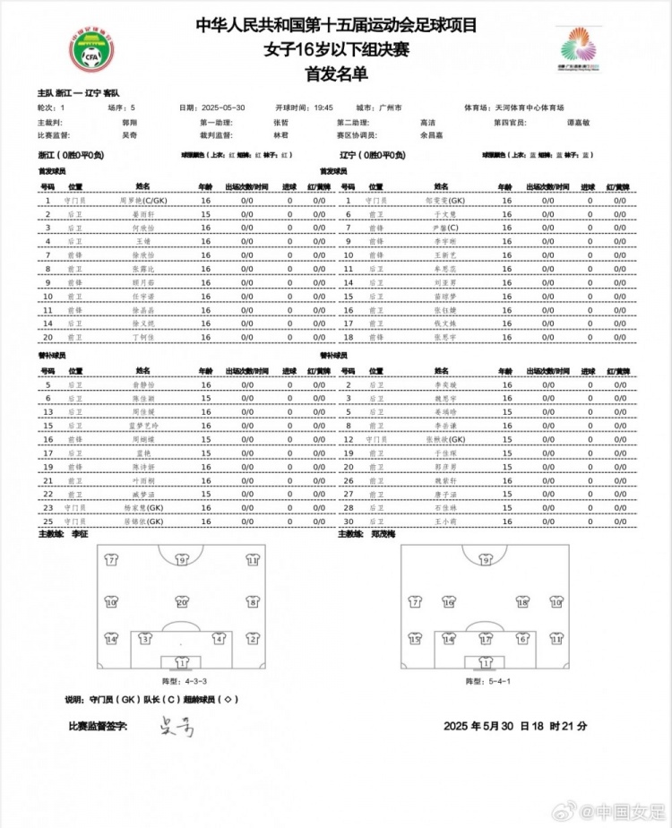 中華人民共和國(guó)第十五屆運(yùn)動(dòng)會(huì)足球項(xiàng)目 女子十六歲以下組 決賽