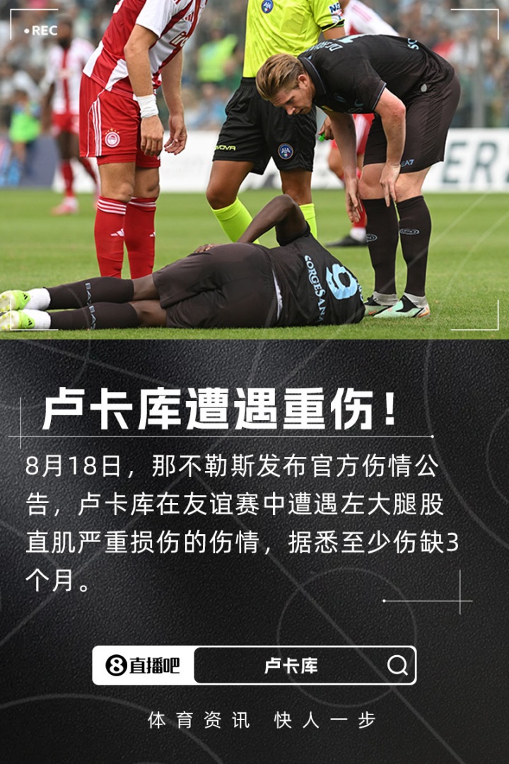 重傷!那不勒斯官方:盧卡庫(kù)股直肌嚴(yán)重?fù)p傷,據(jù)悉至少缺陣3個(gè)月