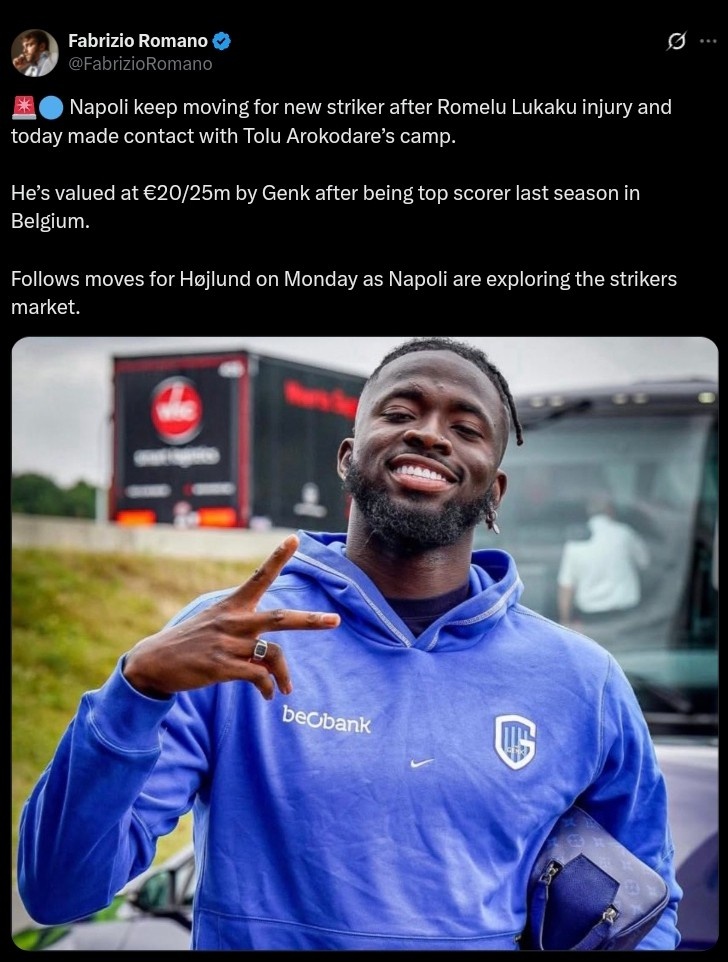 8月19日訊 據(jù)知名轉(zhuǎn)會(huì)專家羅馬諾報(bào)道,在盧卡庫受傷之后,那不勒斯正在尋找新的前鋒,今日他們與亨克前鋒阿洛科達(dá)爾取得聯(lián)系。