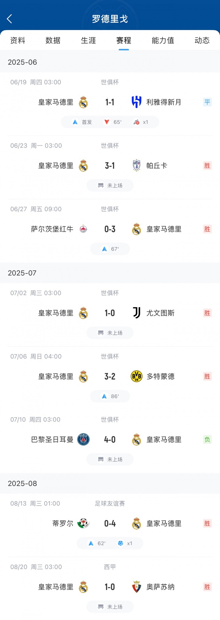 哈維-阿隆索上任后率領(lǐng)皇馬出戰(zhàn)7場(chǎng)正式比賽,羅德里戈僅在第一場(chǎng)首發(fā)65分鐘,隨后6場(chǎng)均替補(bǔ),在這6場(chǎng)中也僅出場(chǎng)2次,共計(jì)28分鐘。