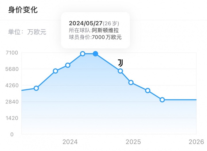 如今僅1年過去,道格拉斯-路易斯身價直降4000萬歐,現(xiàn)僅剩3000萬歐。