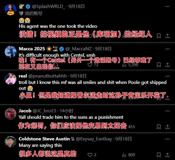 09月19日訊 今日,有美媒借助專門造謠的賬號(hào)消息源,透露2022年追夢(mèng)拳擊普爾事件的泄密者正是近日與勇士鬧僵的庫明加,并表示庫明加此舉是為了在球隊(duì)中獲得更大的角色。