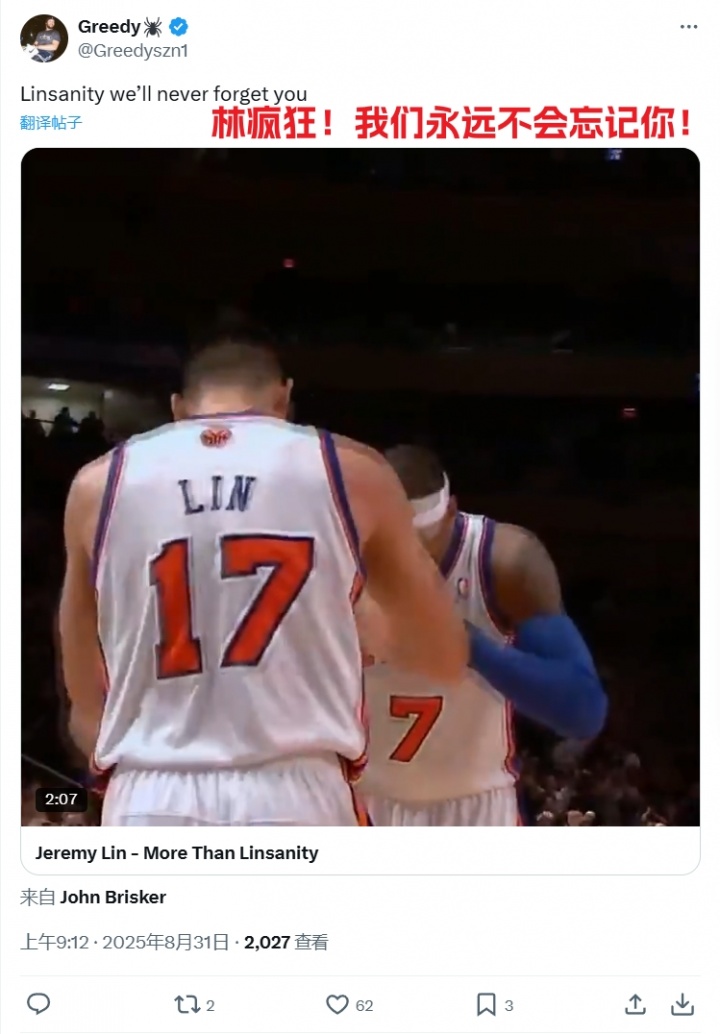 林書豪宣布退役!美網(wǎng)友感慨:“林瘋狂”永生難忘!湖人傳奇!