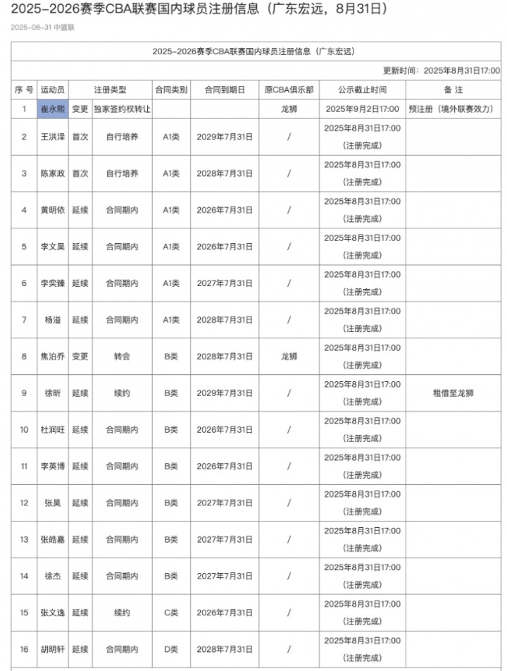 CBA官網(wǎng)今天更新了國內(nèi)球員注冊信息,廣東為崔永熙完成預注冊。