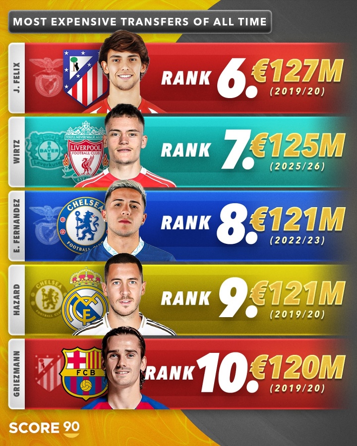 6、菲利克斯,馬競,1.27億歐