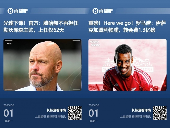 09月02日訊 新賽季夏窗已經(jīng)結(jié)束,伊薩克在截止日成為標(biāo)王,同時也成為了轉(zhuǎn)會窗的第一流量王。然而他卻不是頭條新聞。昨日,勒沃庫森主帥滕哈赫的光速下課,成為了頭條。