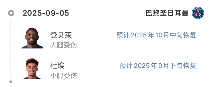 衛(wèi)冕冠軍遭遇傷病潮!巴黎開賽4輪傷5名大將,周中歐冠對亞特蘭大