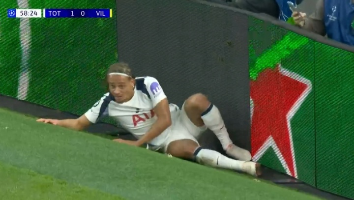 比賽第59分鐘,熱刺進(jìn)攻,哈維西蒙斯底線嘗試救球時(shí)滑出場(chǎng)外,撞到場(chǎng)邊的廣告牌,可以明顯看到被撞到的那塊廣告牌出現(xiàn)了故障。