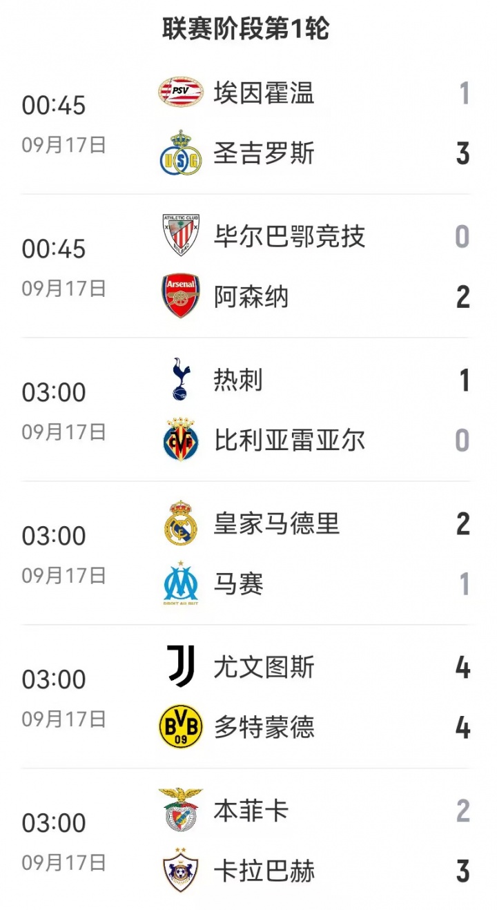 09月17日訊 新賽季歐冠今天凌晨戰(zhàn)火重燃,而第一個比賽日就堪稱“量大管飽”。