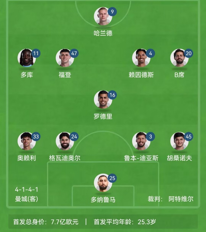 本場曼城首發(fā):