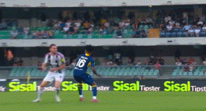 在本場比賽第43分鐘,尤文球員若昂-馬里奧在禁區(qū)內(nèi)手球,主裁判拉普阿諾第一時間沒有吹罰,但VAR隨即介入,主裁判拉普阿諾到場邊觀看視頻回放后,改判點球,維羅納依靠這個點球?qū)⒈确职馄健?/p>