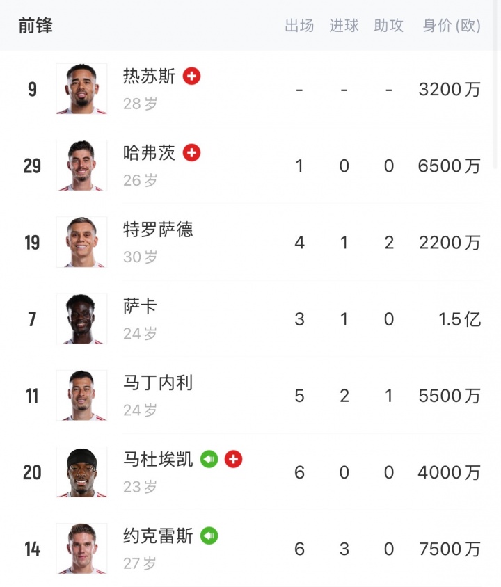 薩卡剛復(fù)出??槍手鋒線再傷一人,棍哥休2月+哈弗茨熱蘇斯還沒(méi)好