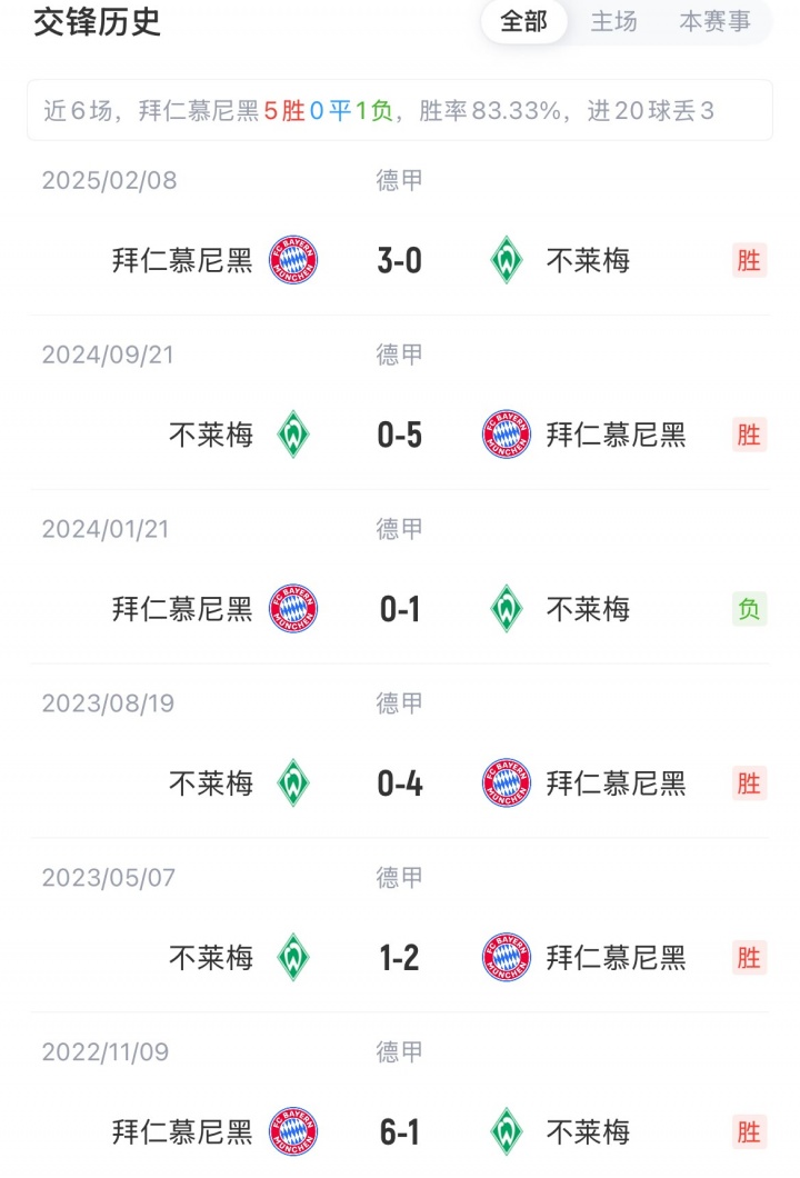 拜仁聯(lián)賽開局四連勝領(lǐng)跑。不萊梅1勝1平2負,暫排第12名。